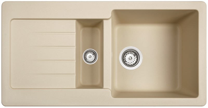 Chiuveta bucatarie granit Teka Kea 60B TG 1 1-2B 1D Topasbeige, reversibila, 1 cuva mare, 1 cuva mica, picurator