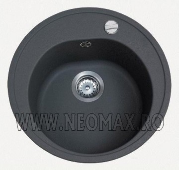 Chiuveta bucatarie granit Teka TEGRANIT Centroval 45 TG SCHWARZMETALLIC , rotunda, 1 cuva, negru metalizat