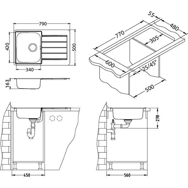 Chiuvetele LINE sunt fabricate din Cr/Ni 18/10. Aceasta gama are linii drepte, moderne si ofera solutii inovative si functionale. Montajul este incastrabil.