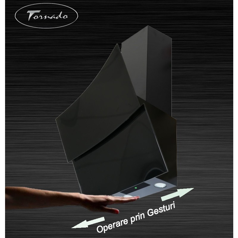 Hota Decorativa Tornado Sky Touch Free 1100 (60) LED, 1 motor Turbo, latime 60 cm, 4 viteze, absorbtie 1100 m3/ora, filtru anti-grasimi aluminiu 5 straturi, Alb/Sticla.