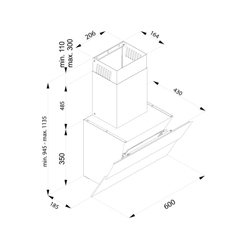 Hota este echipata cu un motor puternic si silentios tip turbina cu o putere de evacuare de 1100 m3/h, cu lampi LED luminoase si economice, precum si cu un control prin telecomanda.