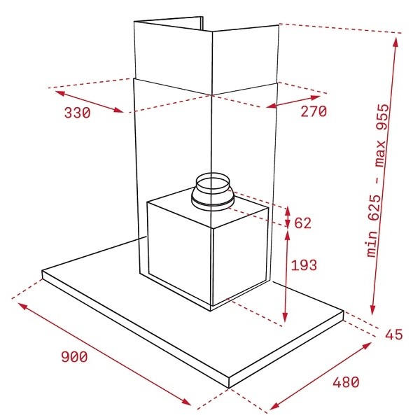 Hota Teka DSH 985, tip semineu, latime 90 cm, forma dreapta, afisaj display, 3 trepte + 1 turbo, iluminat LED, 3 filtre de inox, timer, inox