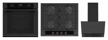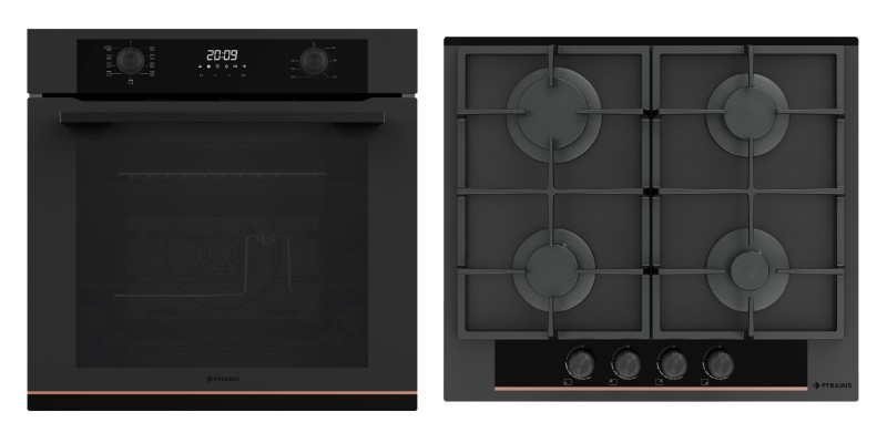 Pachet electrocasnice bucatarie cuptor incorporabil si plita Pyramis Duo Copper Line 2080 Black Glass 202300519