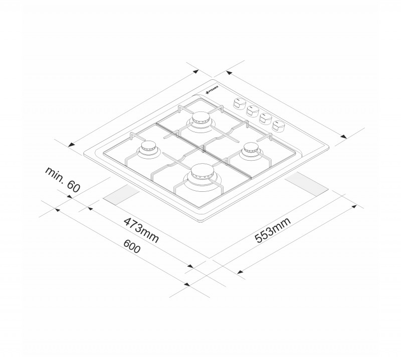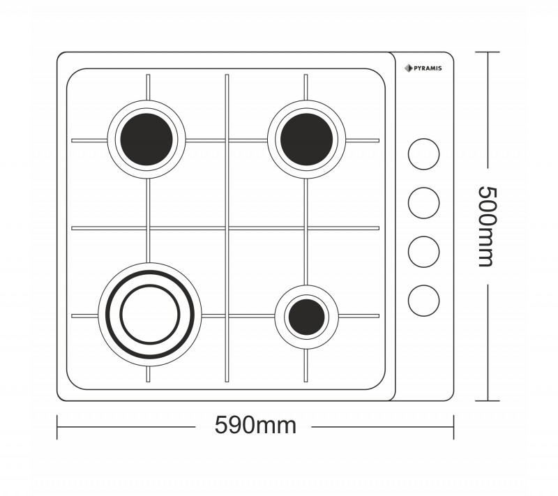 Plita gaz incorporabila Pyramis 60PG 640, inox, 2021000256