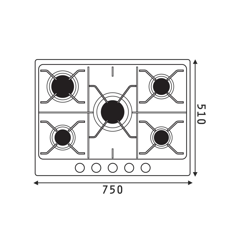 Plita gaz incorporabila Pyramis 75PG 630, 5 ochiuri, inox, 202100254