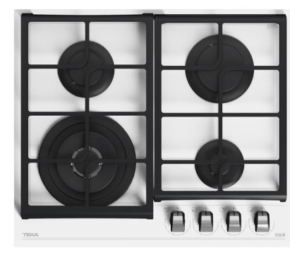 Plita gaz incorporabila Teka GZC 64321 cu 4 arzatoare, 60cm, gratare fonta, Cristal alb