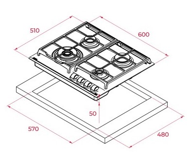 Plita gaz incorporabila Pyramis 60PG 610, 2020000258