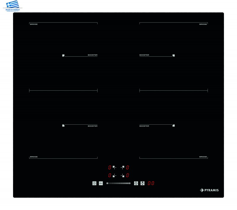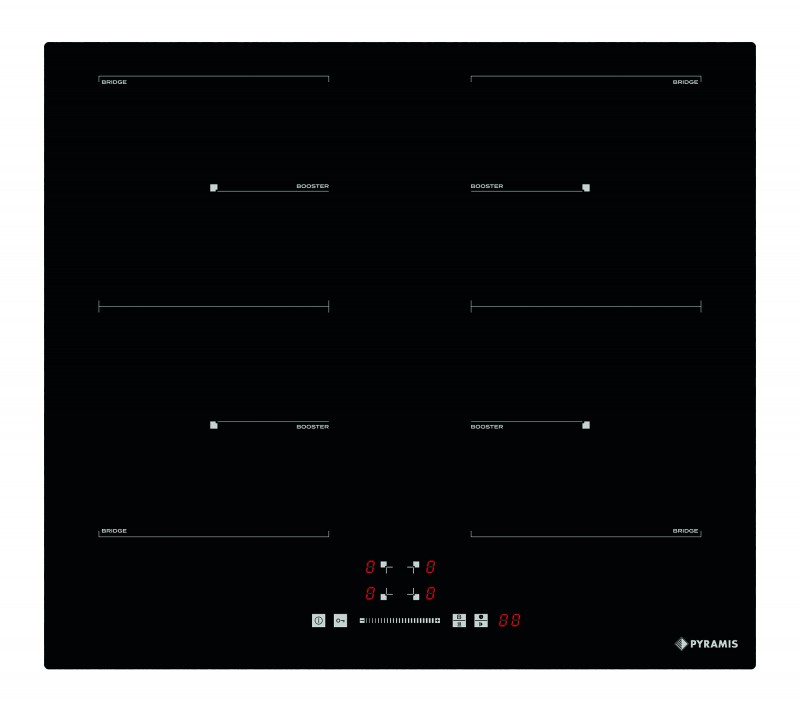 Cantitati mari de gatit, o petrecere cu multi invitati? Nicio grija, cu noua functie Bridge plita Pyramis va ajuta sa gatiti rapid cantitati mai mari de alimente prin unirea a doua zone de gatit individuale facilitand astfel utilizarea de vase de gatit mari sau chiar gratare dreptunghiulare (inclusiv tavi potrivite in acest scop). Nivelele de putere sau daca ati setat deja si o durata de temporizare se vor uniformiza pentru gatirea uniforma si corecta a preparatelor.