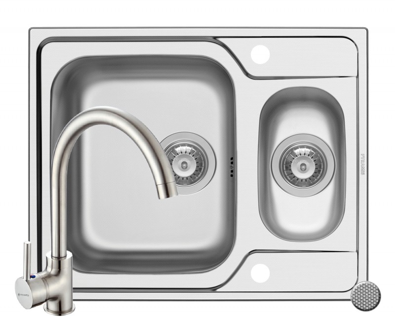 Set chiuveta incastrabila inox FEDRA EXTRA 62 LN si baterie BELLO crom 101230402BLO
