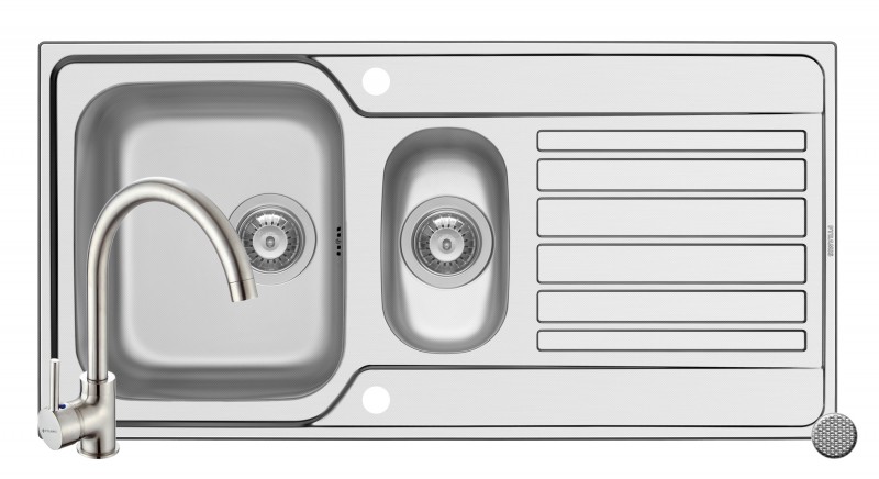 Set chiuveta inox incastrabila FEDRA EXTRA 100 SM si baterie BELLO crom 107172601BLO